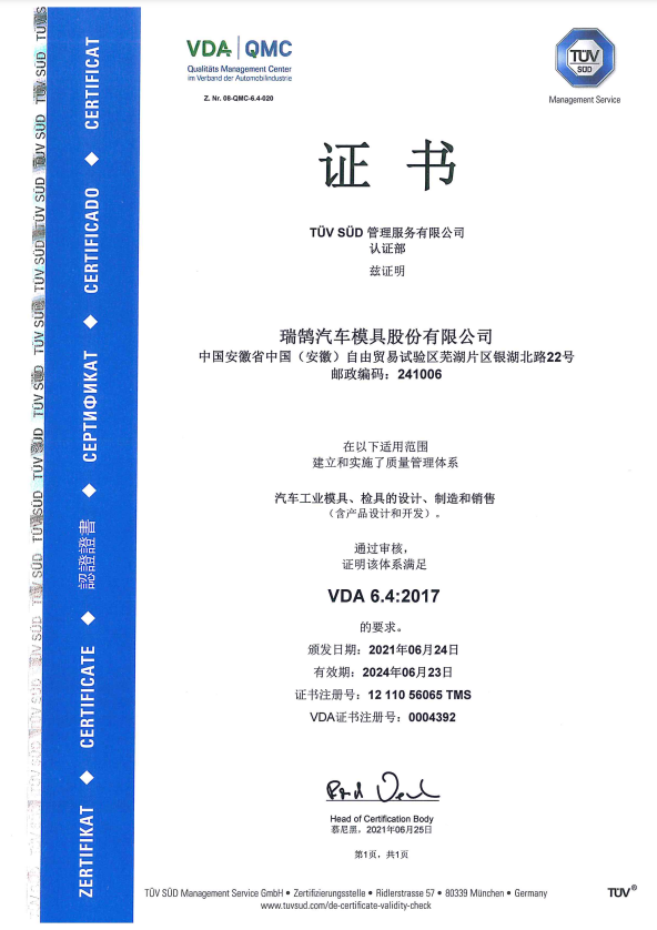 ????????瑞鵠汽車模具股份有限公司成立于2002年3月,坐落于中國(安徽)自由貿(mào)易試驗區(qū)蕪湖片區(qū)銀湖北路 22 號,股本數(shù)18360萬,公司的主營業(yè)務(wù)為汽車沖壓模具、檢具及焊裝自動化生產(chǎn)線的開發(fā)、設(shè)計、制造和銷售,主要產(chǎn)品有沖壓模具(覆蓋件模具、高強板模具)及檢具、焊裝自動化生產(chǎn)線、一體化鋁壓鑄零部件,為國內(nèi)少數(shù)能夠同時為客戶提供完整的汽車白車身高端制造裝備、智能制造技術(shù)及整體解決方案的企業(yè)之一。